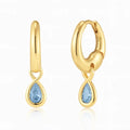 Elegant and refined, the Teardrop Hoops are designed to add just the right amount of sparkle to your everyday. A delicate pear-shaped light blue cubic zirconia is suspended from a sleek gold vermeil hoop, creating timeless movement and light play with every wear.