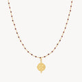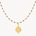 Grounded in meaning and rich in colour, the Earth Garnet Necklace features a delicate strand of faceted garnet gemstones, finished with our signature Earth coin pendant.