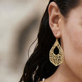 These stunning earrings showcase our signature hammered finish and intricate cut-out details — creating a statement piece that is both timeless and modern.